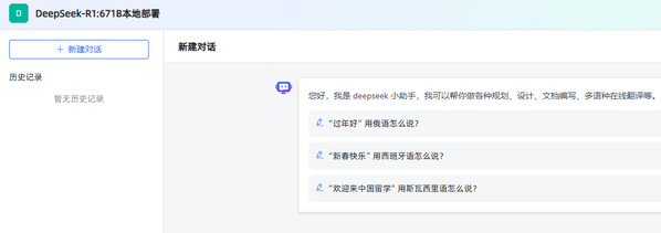 点击首页DeepSeek-R1 671B本地部署图标进入系统